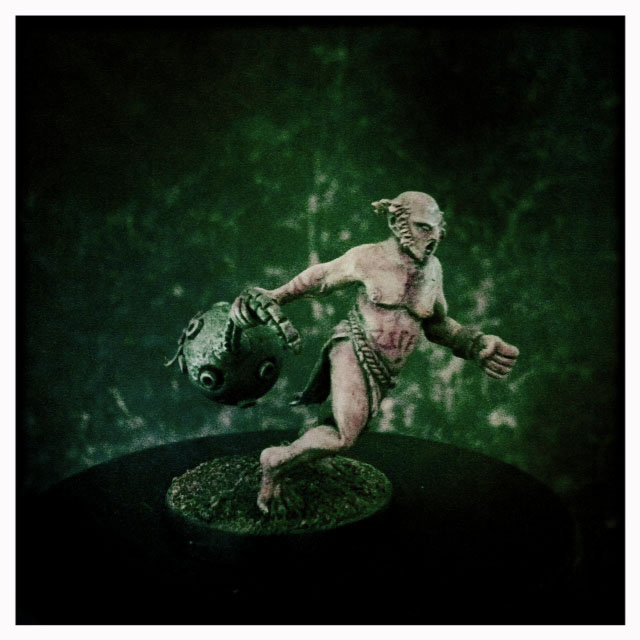 Old Man is starting to gain some shapes. Once again I used GW's Flagellant head to begin with, adding some spiky hair on his head, eye-balls and lips to bring the greedy grin on his face.